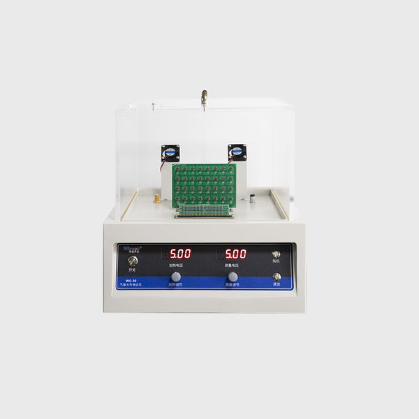 WS-30 Gas Sensor Test System is developed by Zhengzhou Weisheng Electronic Technology Co. It is mainly used for testing the characteristics of gas-sensitive components in experiments or mass production, and can test 30 gas-sensitive components at the same time. Through the processing of the test data, it can display the characteristics of the gas-sensitive components in two ways: graphic curve and data.