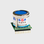 ZE15-CO is a general-purpose and miniaturization electrochemical carbon monoxide detection module. It utilizes electrochemical principle to detect CO in air which makes the module with high selectivity and stability. Built-in temperature sensor can do temperature compensation; and it has digital output and analog voltage output. It is a combination of mature electrochemical detection principle and sophisticated circuit design.